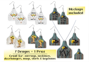 Digital download - 7pc Cattle tag design with cute sunflower western bundle