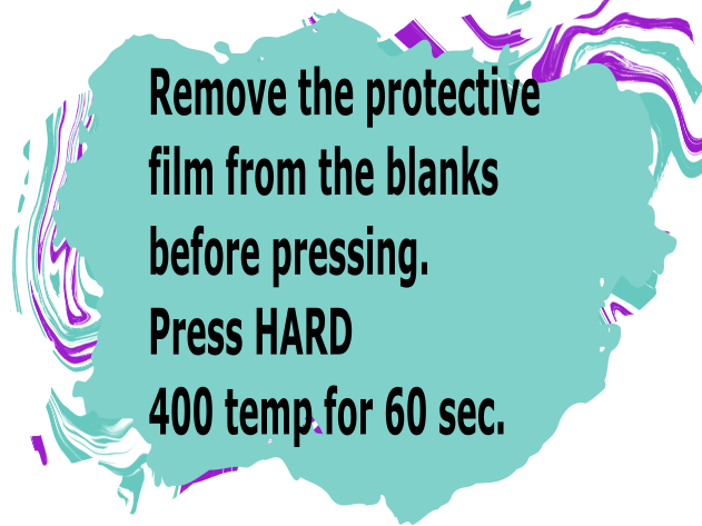 *Remove the protective film from the blanks before pressing. Press 400 temp for 60 sec.
